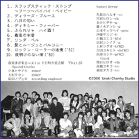 はこの頃いつもラストにやっていた曲でムーン・ライダーズの鈴木慶一の曲です。石橋優美子がピアノで加わり、桑原孝子とすずめがbgヴォーカルで参加、仁彦さんのフィドルも加わり総勢11人、にぎやかにカントリー・ロックでフィナーレです。 |