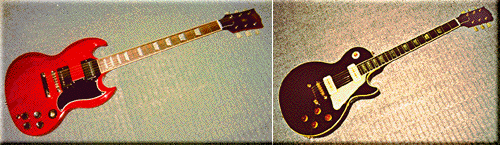 アニバーサリーの黒いレスポールもグッド・ルッキンですよ。黒いボディにクリーム色のソープ・バー・タイプのPU。貴婦人てな感じ。先のグレコ・ゴールドトップ・レスポールのところで書いたけど、この黒いシングル・コイルのレスポール、ニール・ヤングに憧れ彼のレスポールのように改造することを前提に購入しました。ビグスビーのトレモロを取り付け、PU