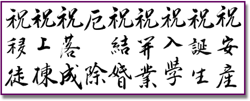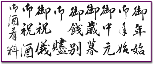 ■ のし袋のし紙の表書きはその地方の風習により違うこともあるようです。またこの『礼法の書方』には「御睦親」のように今では行われなくなった風習もあります。漢字にも現在では使われていない漢字の使用もあります。 |