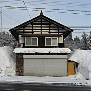 国道を挟んで立つ我が家の車庫。(2010年2月14日)